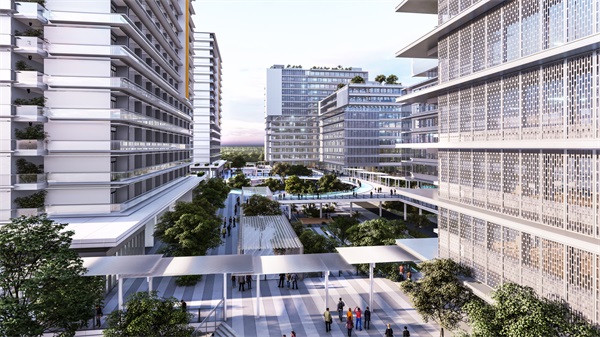 ¼Æ»®ÒÔ¹¤ÒµÔ°µÄÈ˾ÓÓëÉú²úÐèÇóΪÆðµã£¬Ìá³ö¡°Ò»Öá˫Ժ¡±½¹µã¿´·¨¡£¹¤¾ßÏò¾°¹ÛÖÐÖᣬ»®·ÖÉú²úÇøÓëÉúÑÄÇø£¬²¢Í¨¹ý¶þ²ãƽ̨ÔÚ±ÊÖ±¿Õ¼äÉÏʵÏÖÈË¡¢»õ·ÖÁ÷£¬»¥²»×ÌÈÅ£¬³ä·ÖÌá¸ßÆ¬ÇøµÄ½»Í¨Ð§ÂÊ¡£